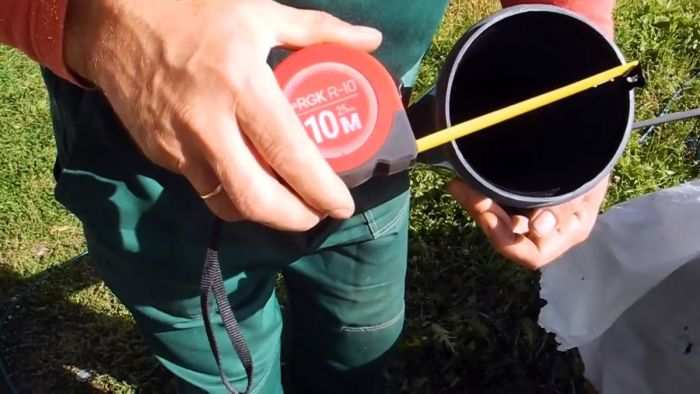 В результате из одной трубы 2 м получится 2 желоба общей длиной 4 м. Очень важно сделать ровный раскрой. Для этого первая линия рисуется маркером по имеющейся вдоль трубы надписи.