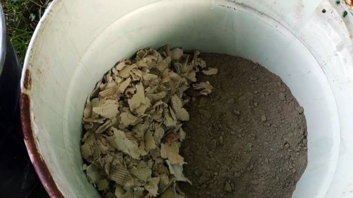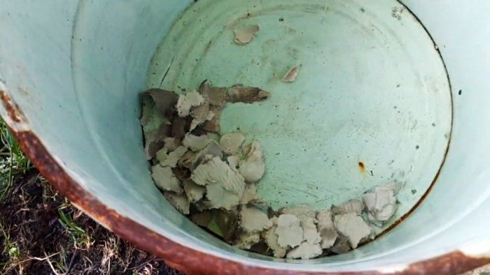 Это может быть как новый, так и ранее бывший в употреблении лист. Размер кусочков примерно ноготь большого пальца, можно немного крупнее. Лоскуты заготавливаются до тех пор, пока их объем не будет равняться половине объема необходимого раствора.