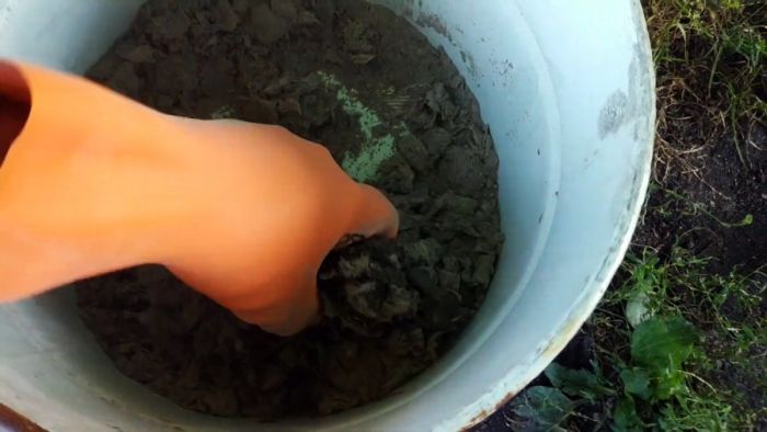 После смешивания к ним добавляется немного воды. Требуется сделать густую смесь с консистенцией герметика.