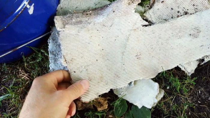 Для заделки зазора нужно приготовить жароустойчивый состав. Для него необходимо нарвать на мелкие кусочки листовой асбест. Его толщина и состояние не имеет значения.