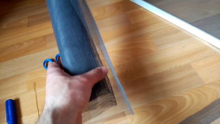 Для изготовления ручки нужно вырезать полоску москитной сетки шириной 3-4 см. Длина ленты для одной ручки порядка 40-60 см.