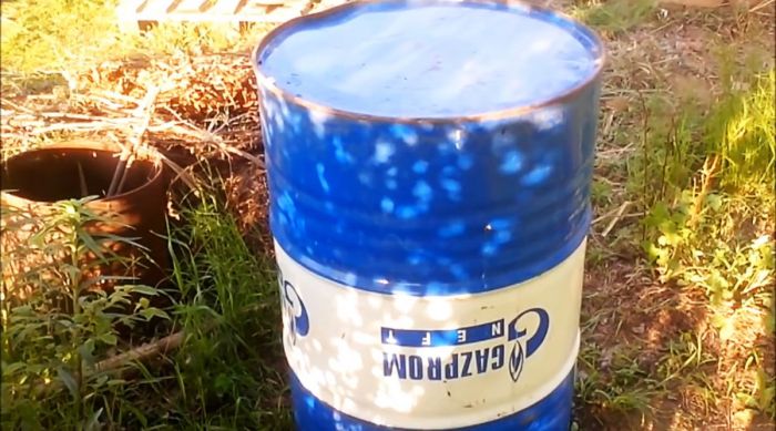 На следующий день готовится еще одна порция цемента с водой. Аналогичным образом наносится второй слой. Затем бочка переворачивается верхом на грунт пролитый водой. Спустя сутки процедура повторяется третий заключительный раз, и емкость также оставляется схватываться на мокрой земле.