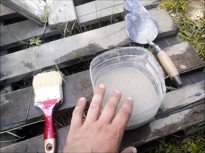Далее следует промыть бочку и дать ей просохнуть. В это время готовится небольшое количество цементного раствора.