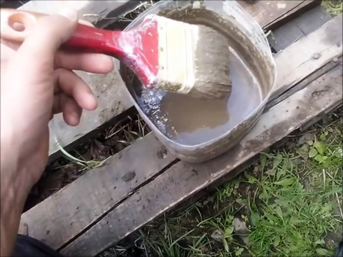 После этого бочка окрашивается этой смесью изнутри с помощью кисти.