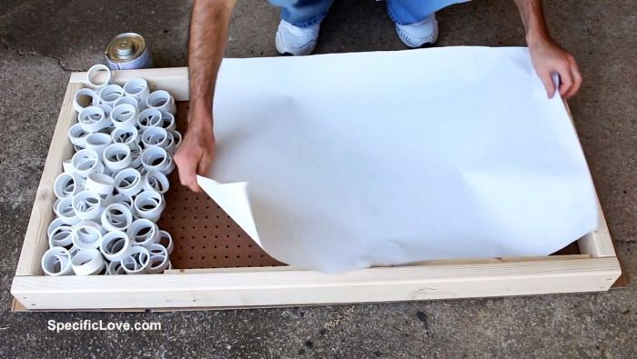 Такая декоративная решетка может применяться как стена для открытой беседки или веранды. Также ее используют в интерьере в качестве межкомнатной перегородки. В продаже можно встретить ПВХ трубы разного цвета. Желательно сразу использовать подходящий, чтобы потом не красить решетку. Закрасить ее не так просто, к тому же со временем краска может начать отслаиваться, если изделие используется на улице.
