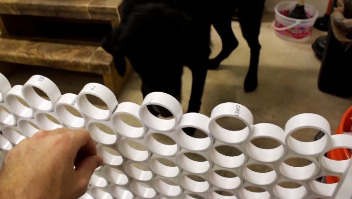 Для изготовления решетки, нужно нарезать трубу на узкие кольца и склеить их вместе. Таким образом, размер ячеек будет равным диаметру используемой трубы. На трубке с помощью маркера и рулетки нужно поставить отметки для реза с шагом 10 мм. То есть из 1 м трубы получиться 100 колец. Отталкиваясь от этих данных, можно заранее рассчитать какая длина трубы потребуется. К примеру, чтобы сделать 1 кв.м решетки из трубы диаметром 40 мм, понадобится 6,25 м.