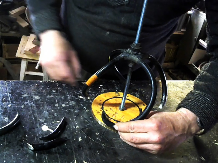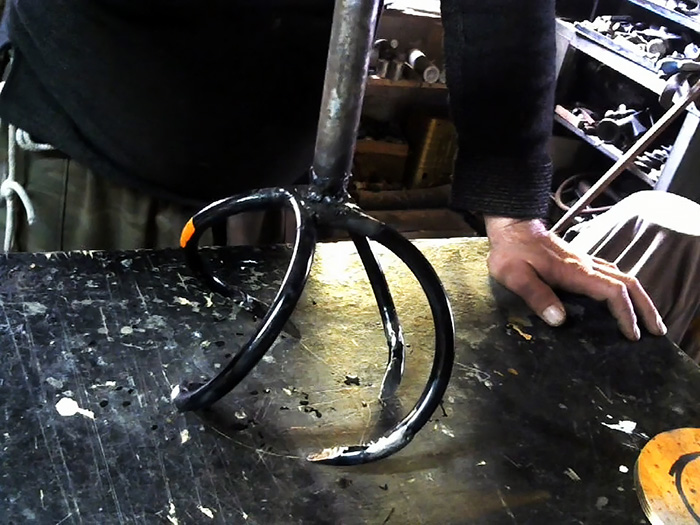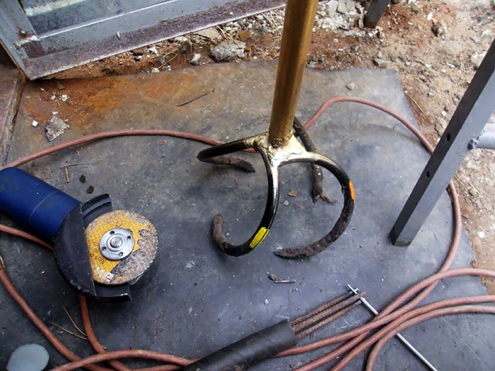 Эти заготовки с одной стороны затачиваются аналогичным образом, что позволяет им ровно стыковаться с длинными витками. С другого края на них делается заточка под конус. Детали свариваются, и швы зашлифовываются. Наращивание позволяет задать виткам правильное направление, что невозможно сделать, если пытаться обойтись только одним длинным отрезком витка пружины.