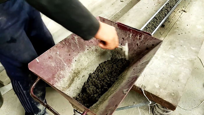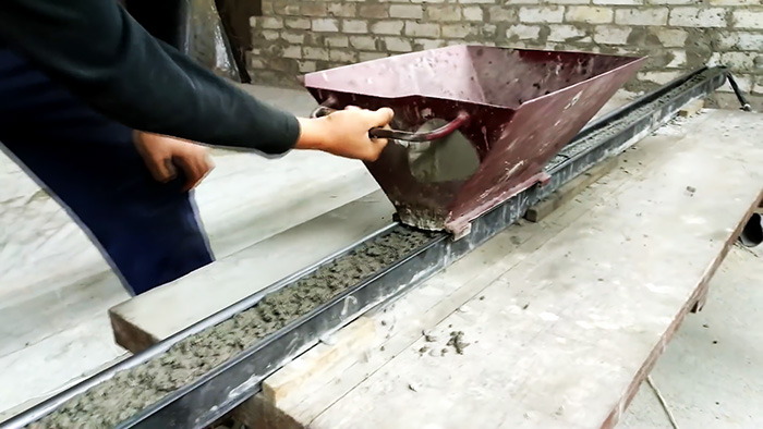 На следующем этапе форма наполняется раствором.