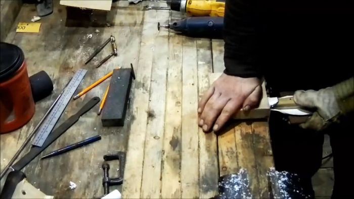 Затем с помощью бормашины или ножовкой по металлу заготовка обрезается по линиям.