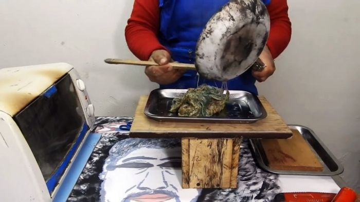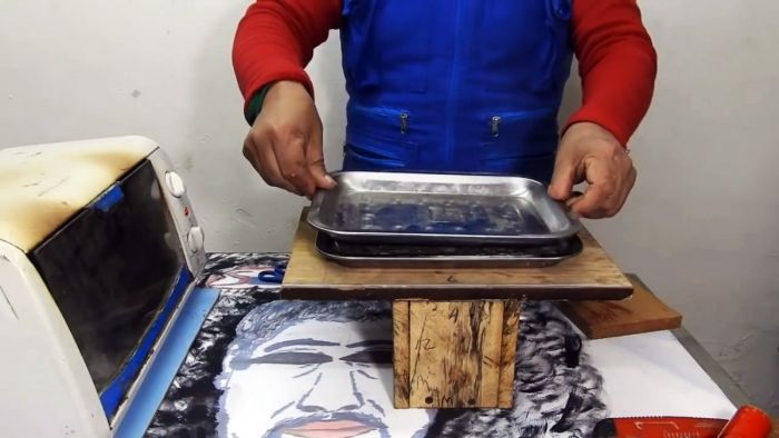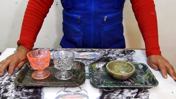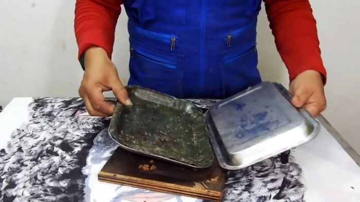 В это время подготавливаются 2 одинаковые металлические формы для литья. В их качестве могут использоваться подносы, тарелки, салатницы и т.д. Они должны быть сухими и чистыми. Важно, чтобы емкости имели развернутую форму и плотно входили друг в друга при складывании стопкой.