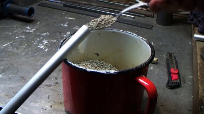 Если его нет, то можно использоваться бентонитовую глину, продаваемую в обычных супермаркетах как наполнитель для кошачьего туалета. Песком нужно плотно запрессовать всю полость трубы. В идеале его утрамбовывать штоком подходящей длины и диаметра.