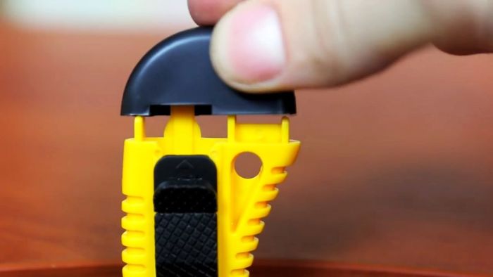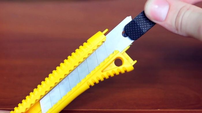 Совет: кончик полотна можно заточить на наждаке, и в итоге сам канцелярский нож не потеряет своей функции, а приобретет новую.