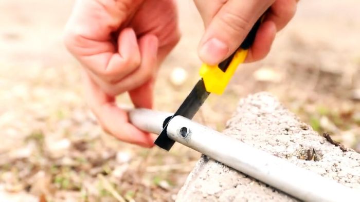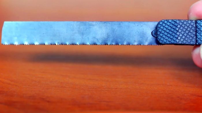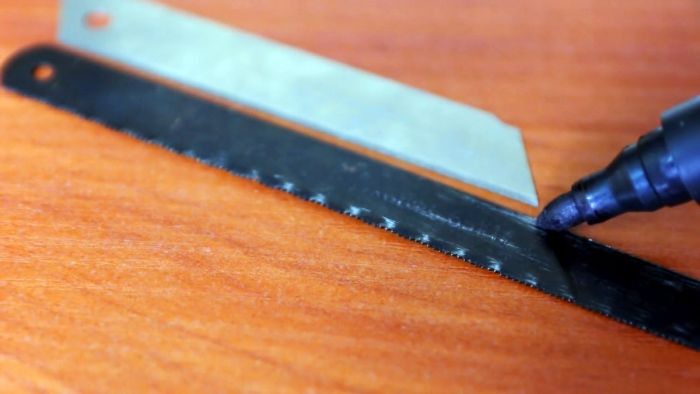 Все что понадобится это сам канцелярский нож средних размеров - он является самым распространенным и обычное полотно для ножовки по металлу. На «все про все» уйдет минута, край две.