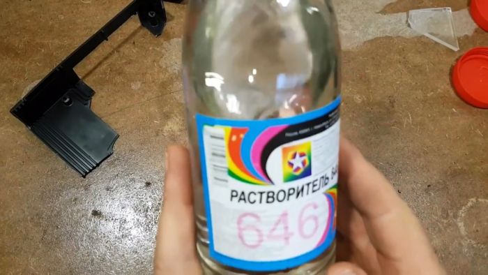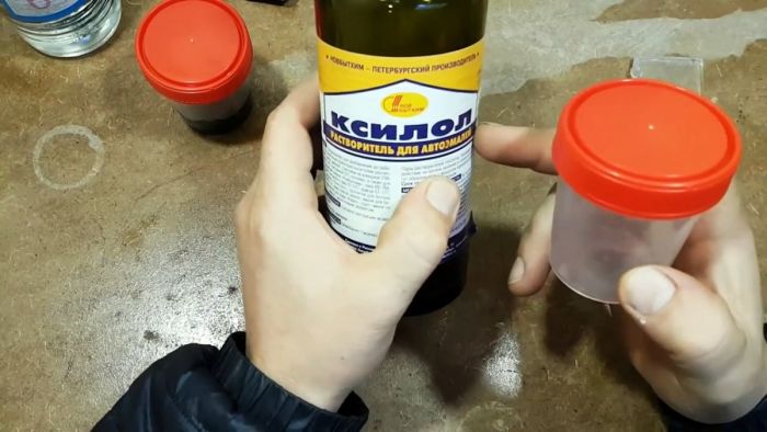 Измельченное оргстекло заливаем «646-ым» растворителей, а пластик – ксилолом.
