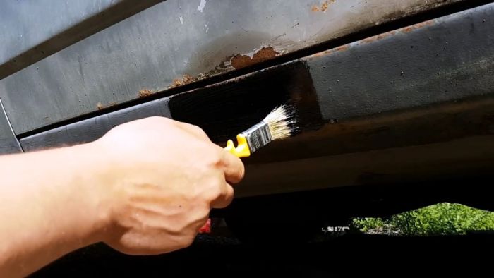 Антикоррозионный состав кистью наносим на детали автомобильного кузова, нуждающиеся в защите от ржавчины. Покрытие лучше сделать двух- или трехслойным с промежуточным выдерживанием каждого слоя до полного высыхания.
