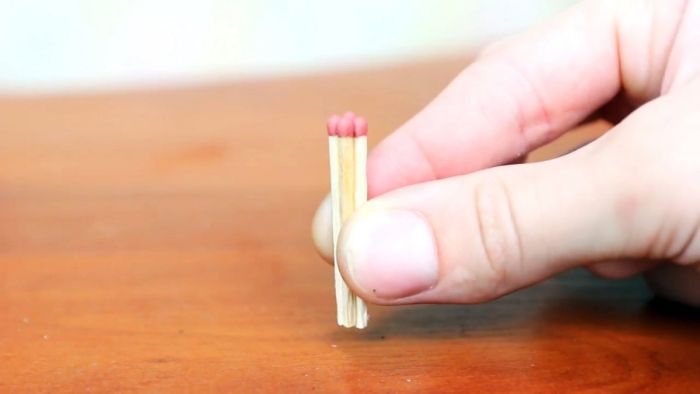 Чтобы зажечь спичку, прокручиванием пальцами, вращаем одинокую спичку упирая ее головку между четырьмя другими. После резкого прокручивания и небольшого трения все спички разом зажигаются.