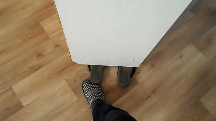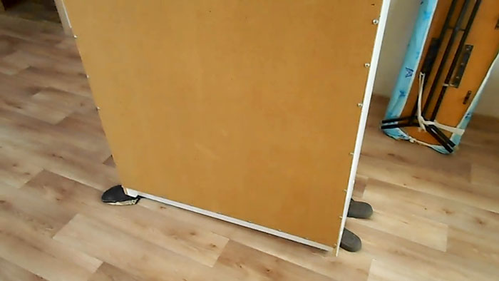Теперь фактически шкаф стоит на 4 тапочках.