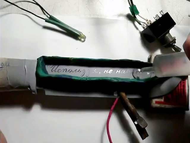 К зачищенному месту на клинке присоединяется плюсовой провод от источника питания. После этого пластилиновая ванна заполняется солевым раствором на высоту 3-4 мм.