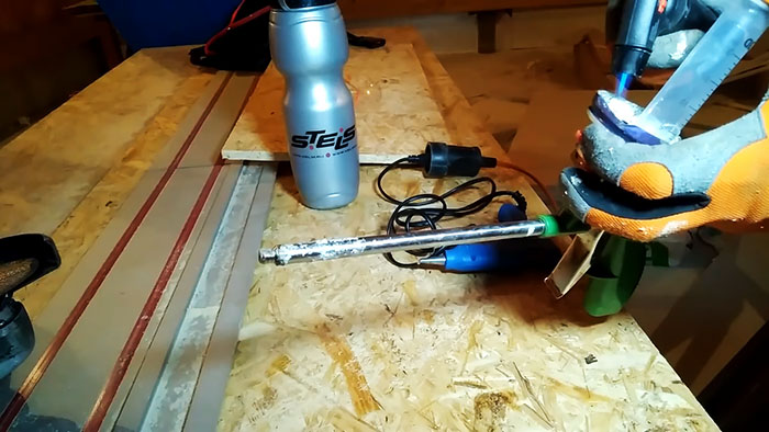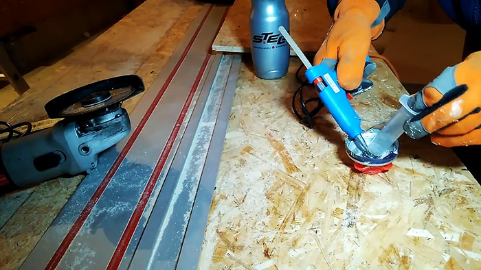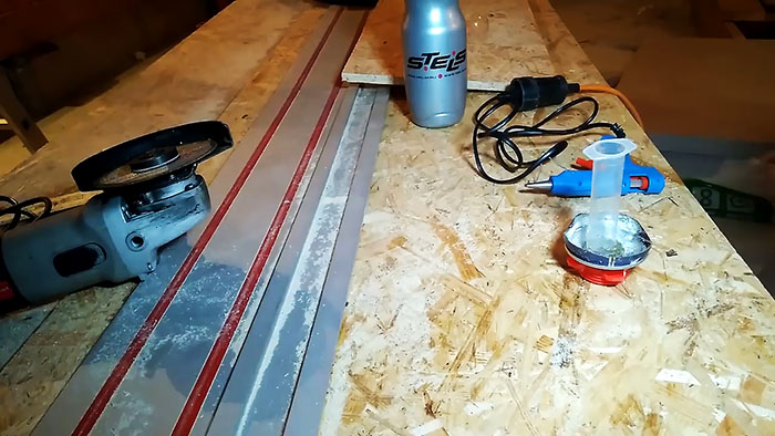 Чтобы сделать приспособление для очистки пистолета от засохшей монтажной пены, у нас под руками должны быть следующие инструменты и материалы: болгарка, ножницы или нож, пассатижи и саморез, тканевая салфетка, клеевой термический пистолет и газовая горелка.