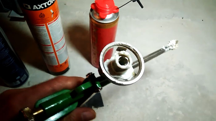 Такой способ очистки пистолета от засохшей монтажной пены обходится, имея в виду розничную цену растворителя «646» и специального средства, примерно в 4,5 раза дешевле.