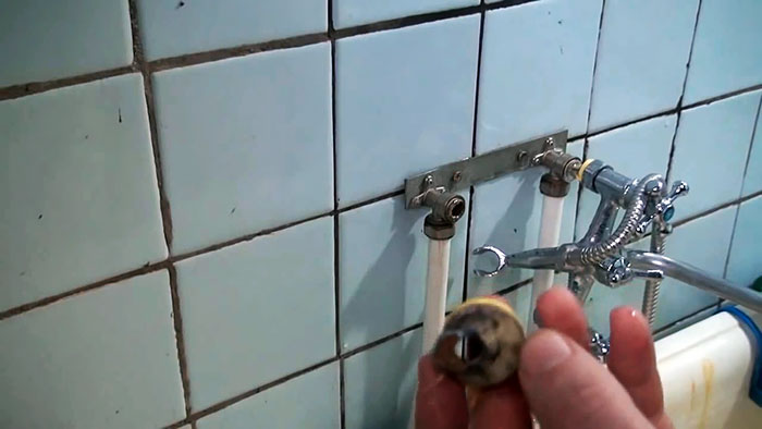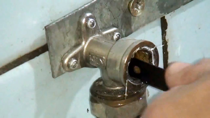 Эксцентрик с трещиной нужно попытаться выкрутить против часовой стрелки разводным ключом. При этом следует стараться захватить его как можно ближе к водорозетке.
