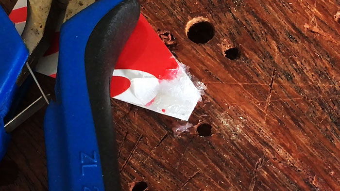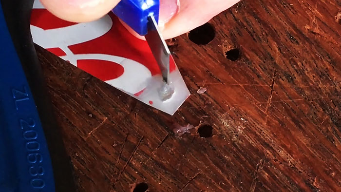Если был применен вазелин, то к нему нужно приложить жало паяльника, чтобы он расплавился в жидкое масло. После этого берется монтажный нож или другой острый предмет и им царапается алюминий под вазелином. Важно, чтобы царапины наносились по закрытой от воздуха поверхности. Как только вазелин начинает густеть, его снова следует расплавить жалом паяльника. Нужно активно тереть лезвием ножа, чтобы снять оксидную пленку на металле, а кроме этого создать рельеф, к которому потом хорошо прилипнет припой.