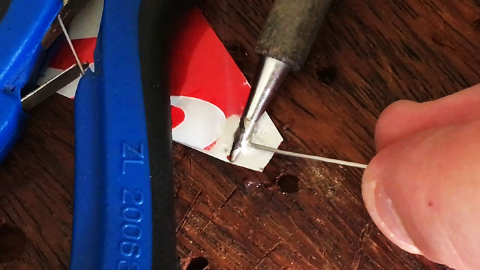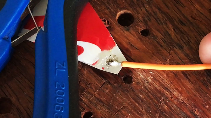 Затем к подготовленной с маслом и трением поверхности можно прикладывать луженые проводки, проволоку или что потребуется. Они будут припаиваться в секунду, не забирая на себя все олово из алюминия, как происходит обычно. После пайки остатки масла убираются ваткой смоченной в спирте.