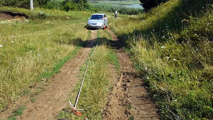 Двигаясь нужно стараться не вращать рулем, чтобы канат не сходил со шпули, в противном случае он быстро перетрется о ее край. Это приспособление просто идеально для переднеприводного автомобиля или вездехода. Машинам с задним приводом оно поможет выехать назад. При его использовании с колом нужно действовать аккуратно. Он должен быть длинным и крепким, чтобы не вырваться под нагрузкой и не полететь в лобовое стекло.
