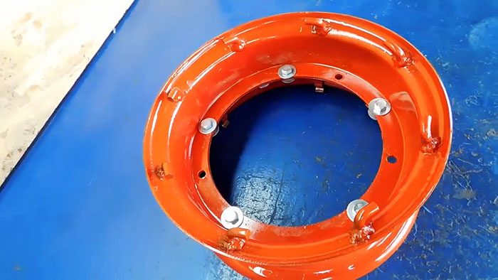 Самовытаскиватель работает по принципу катушки, наворачивающей на себя веревку, конец которой закреплен на стволе дерева, столбе или вбитом в землю колу. При скручивании каната машина вытягивается из непроходимого участка дороги. Изготовление такой катушки нужно начать со сборки шпули. В ее качестве можно использовать любой колесный диск, главное чтобы он был поменьше, чем диски на машине.