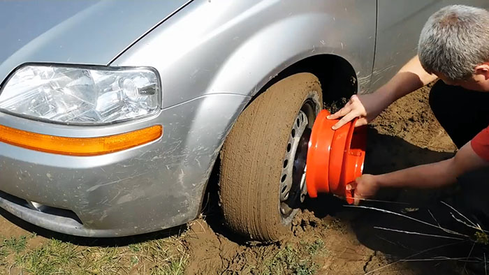 При буксовке колес автомобиля в грязи или снегу выбраться из бездорожья крайне сложно. В таких случаях выручает лебедка, но есть и более дешевое самодельное приспособление. Себестоимость его изготовления почти ничтожна, а практическая польза неоценима. При необходимости приспособление быстро устанавливается и снимается. Рассмотрим процесс его изготовления для автомобиля со штампованными дисками.