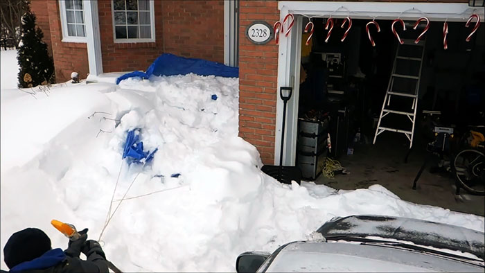 Это натолкнуло меня на мысль: а что если постелить этот брезент на придомовую тропинку или дорогу перед гаражом? Тогда можно будет с утра, после сильного снегопада, одним движением убрать снег с тут же ехать или идти.