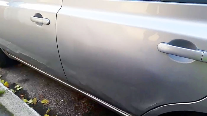 Конкретный пример: боковая вмятина на двери. Отсутствуют сколы, царапины и трещины. Нужно только выправить.