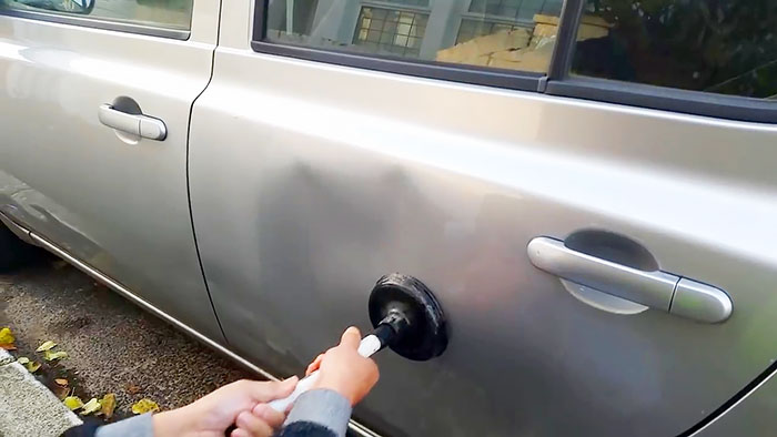 Если случайно у вас на кузове образовалась большая вмятина которая не требует покраски, то выправить ее вполне реально и самому. Причем сделать это можно такими вещами, которые предназначены абсолютно для других целей.