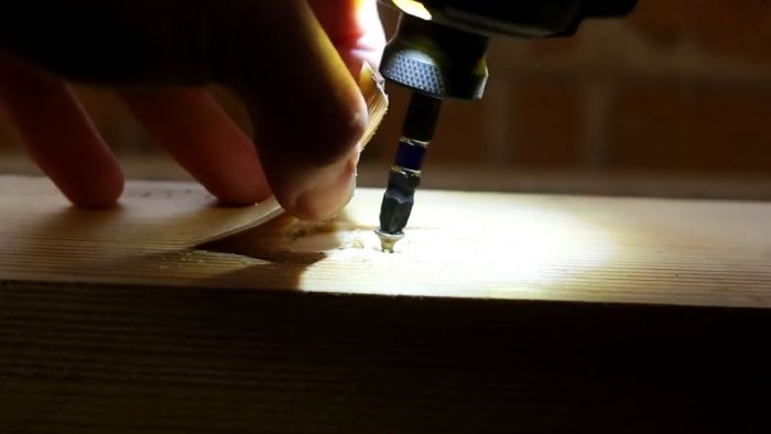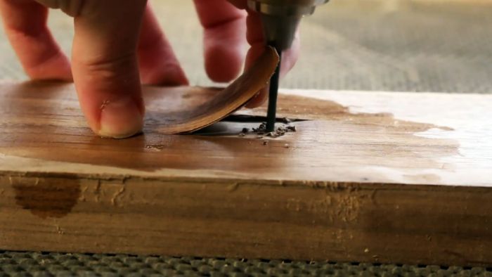 При этом часть мелкой древесной пыли заполняет углубления и еще не полностью высохшим клеем там закрепляется. Это еще больше маскирует место вкрученного в древесину самореза или шурупа.
