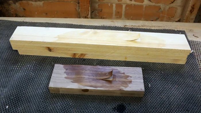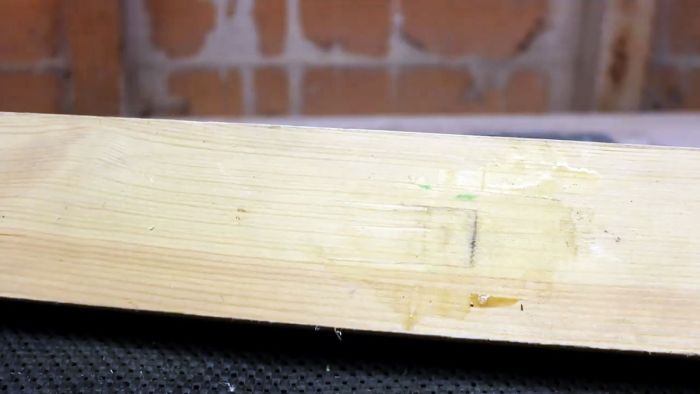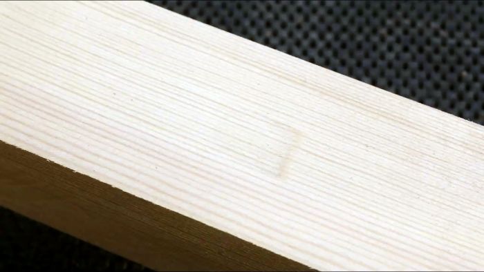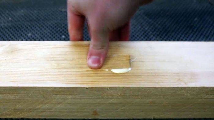 Слегка смачиваем водой поверхность деревянного бруска или доски, чтобы волокна древесины под действием влаги немного размякли и стали менее хрупкими.