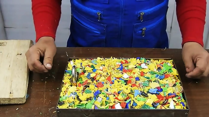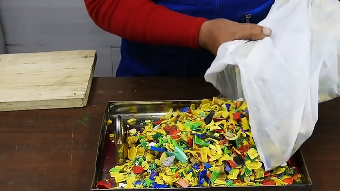 Пластиковые крышки лучше заранее мелко нарезать. Это позволит быстрее расплавить сырье и сделать его гомогенным, что улучшит качество изделия. Для работы понадобятся следующие инструменты и приспособления: