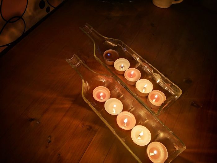 Из стеклянных бутылок можно смастерить различные креативные штуки, для дополнения интерьера вашего дома. Конечно, процесс работы кропотливый и трудоемкий, но результат того стоит. Вы получите оригинальные и необычные изделия.