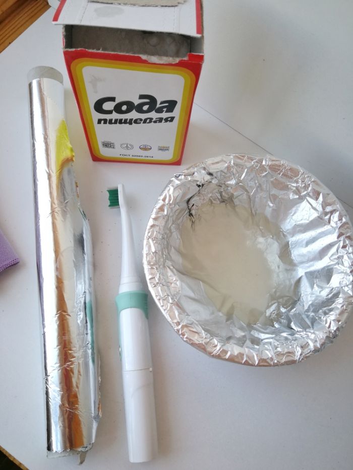 Всем привет! Сегодня будем пробовать вернуть чистоту и блеск, потускневшему или покрывшемуся черным налётом, серебру. Для этого нам понадобятся всего 2 ингредиента: сода и фольга.