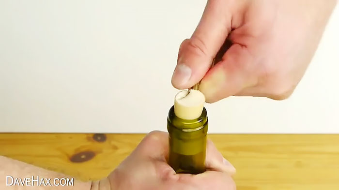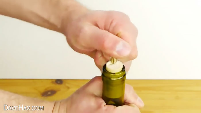 Метод отлично работает с пластиковой пробкой, но вот пробки сделанные из натурального материала могут дать осечку и раскрошиться, но не всегда, просто имеется вероятность.