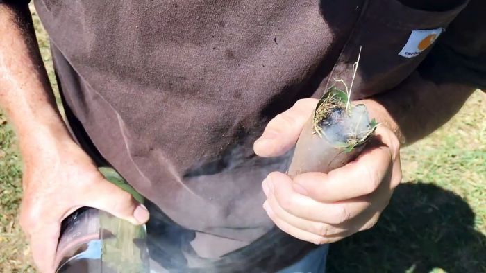 Разжигаем огонь при помощи стеклянной бутылки