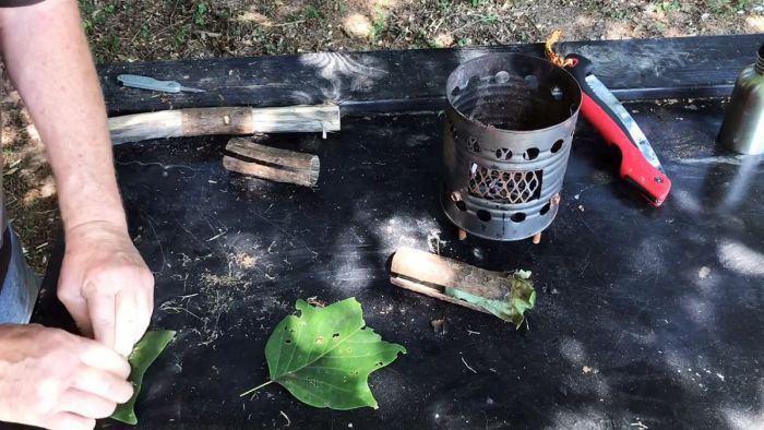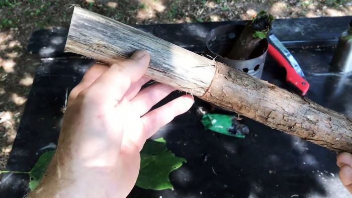 С сухой палки, которую без проблем можно найти не только в лесу, ножом необходимо срезать целиковую кору по кругу.