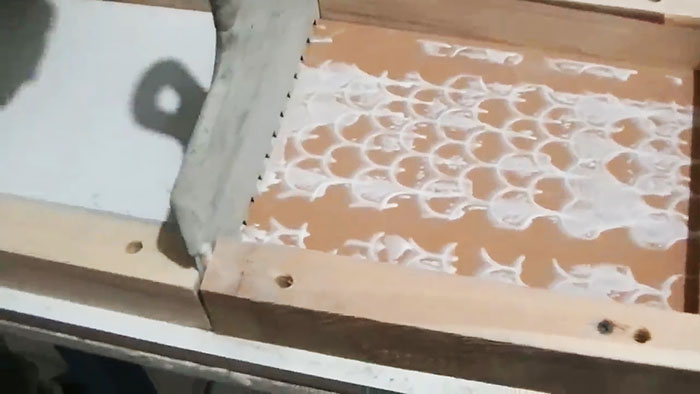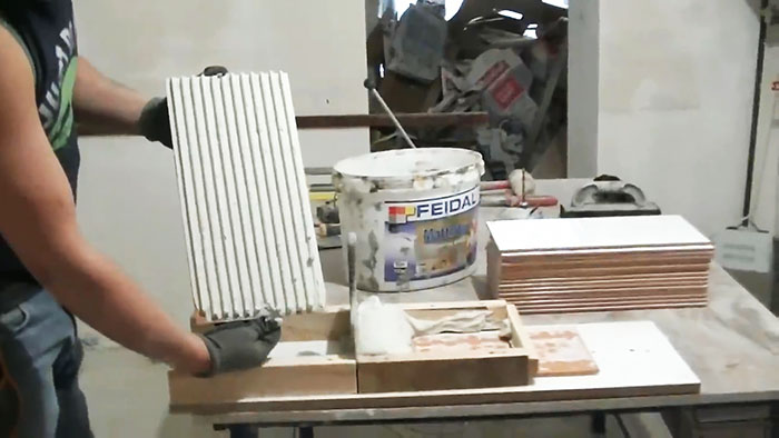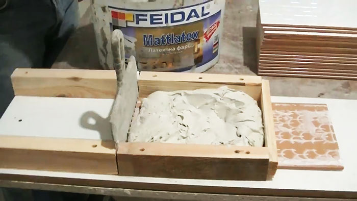 В зависимости от габаритов вашей плитки, одной загрузки раствора хватает на 3-4 штуки. Но никто не мешает сделать края приспособы выше, тем самым увеличить вмещаемый объем.