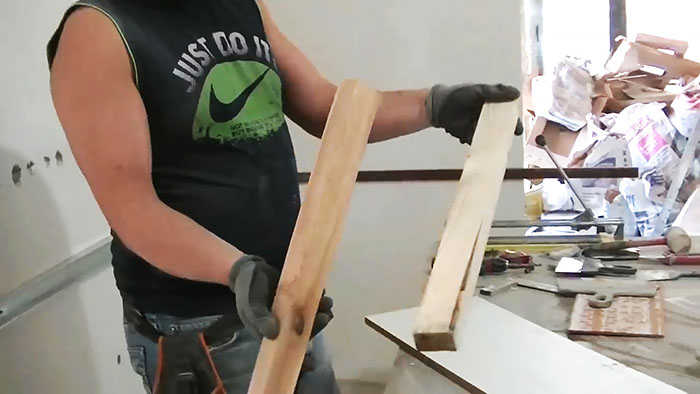 Берем пару прямоугольных бруска и кусок ДСП.