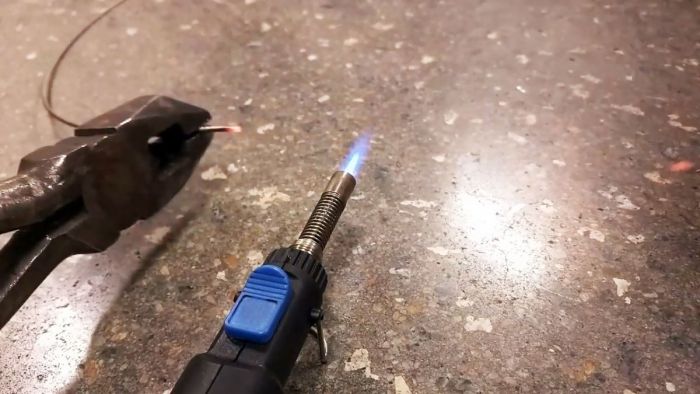 Не обязательно иметь супер горелку с высокой температурой, разогреть тонкий трос до красна способна практически любая.