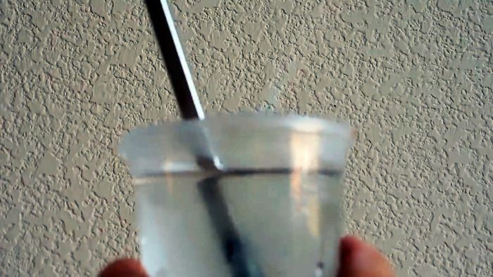 После охлаждения в воде видно, что отвертка покрыта нагаром, который удаляем наждачной бумагой.