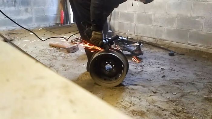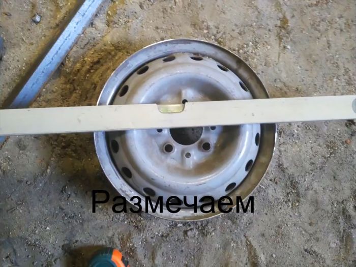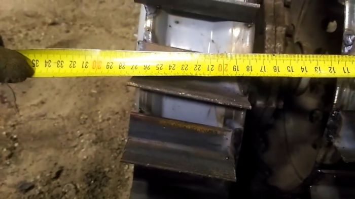 Его отрезки надежно привариваются на первое колесо не ровно, а с небольшим перекосом в 1 см.
