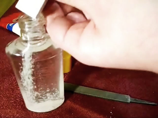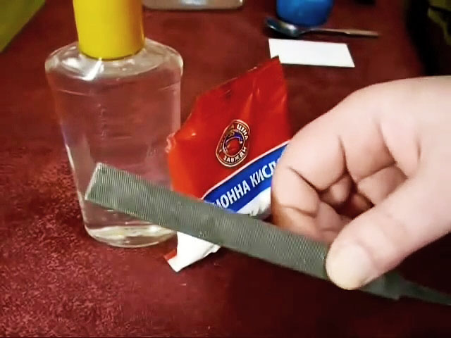 Тем не менее, лучше еще подержать напильник в растворе 12 часов, предварительно очистив его от пластиковой стружки металлической щеткой. Ускорить процесс травления можно, поставив емкость в теплое место, или, повысив концентрацию кислоты.