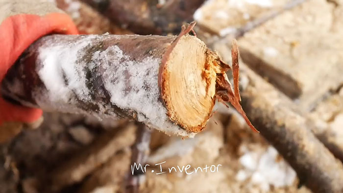 Ручная цепная пила готова к использованию. Прижмите ветку ногой и попробуйте ее распилить. Если цепь острая, то для заготовки дров необходимой длины потребуется минимум физических усилий и времени.
