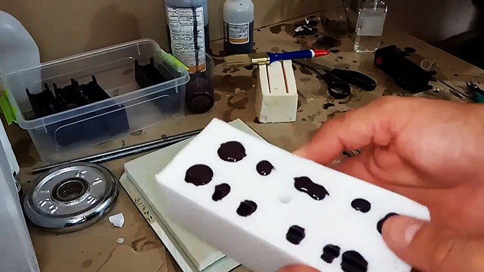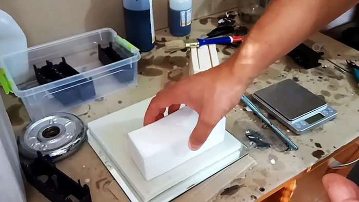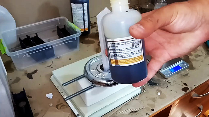 Для качественного смешения нужны прецизионные весы и пластиковый стаканчик. В основу можно добавить краситель любого цвета, который продается отдельно. На 1 кг полиуретана нужно 90-100 капель красителя.