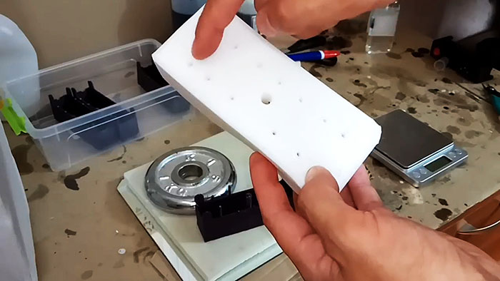 Через полчаса начинаем извлекать полиуретановую отливку из силиконовой формы.